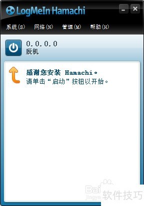 8、 启动Hamachi后进入主界面,此时显示脱机,无法进行任何操作。