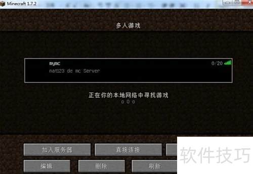 19、 在局域网中,我的世界客户端通过输入服务器地址加入多人游戏进行联机。