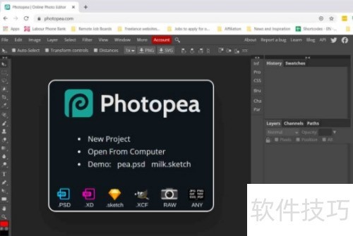 5、 Photopea与GIMP、Paint.NET相似,均为免费的图像编辑工具,支持打开和编辑PSD文件,功能实用且易于获取。其界面设计与Photoshop高度相似,对于熟悉Photoshop的用户而言,操作逻辑直观,上手迅速。与另外两款软件最大的不同在于,Photopea是一款基于网页浏览器的在线图像编辑器,无需下载安装,打开浏览器即可直接使用,跨平台兼容性强,适合需要快速处理图片或设备存储有限的用户。这种云端运行的模式提升了使用的便捷性,同时保持了专业级的编辑能力,是轻量高效修图的理想选择。