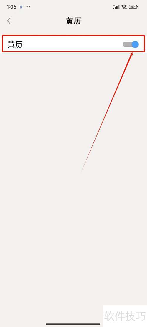 3、 进入页面后,点击关闭黄历右侧的开关按钮。