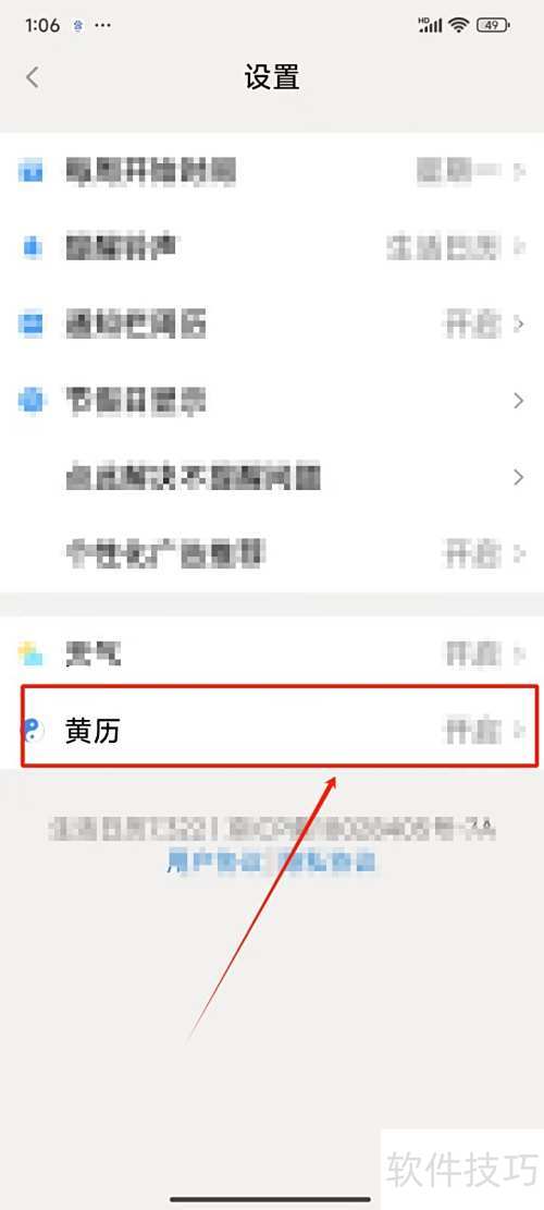 2、 进入设置后选择黄历选项