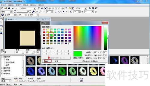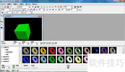 在Ulead Cool 3D中,可通过插入几何对象功能制作各类立体图形,下面将介绍如何利用该工具创建一个绿色的立方体模型。