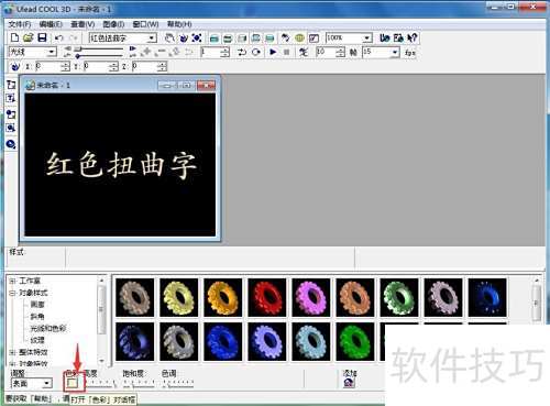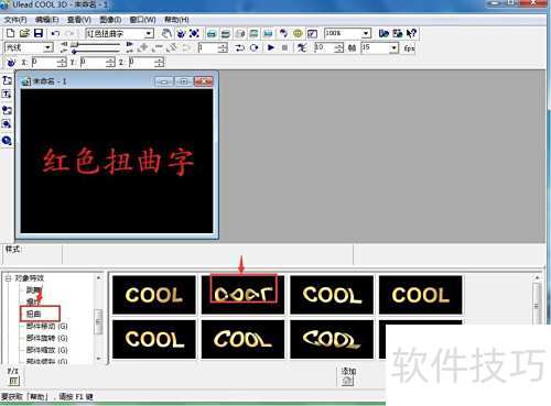 在Ulead Cool 3D中,可制作多种文字特效,下面介绍如何创建红色扭曲文字效果,通过设置字体颜色与变形参数,轻松实现生动醒目的视觉呈现。