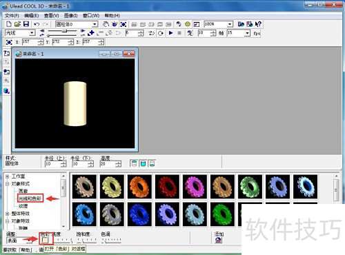 4、 在Ulead Cool 3D软件中生成一个立体圆柱图形。