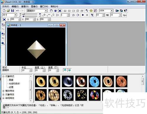 4、 在Ulead Cool 3D中创建圆锥体后,点击调整其尺寸大小。