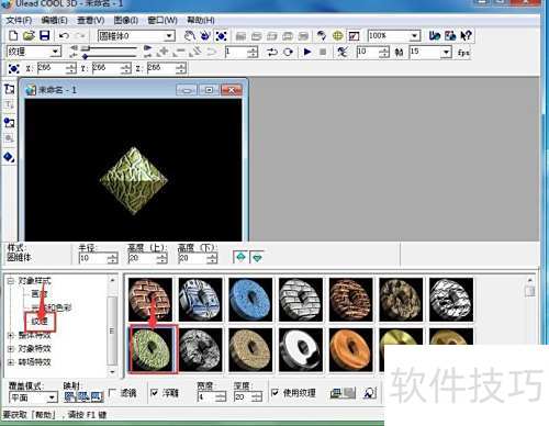 在Ulead Cool 3D中,可为已创建的几何体添加多样纹理。以下将介绍如何为圆锥体应用纹理效果,使模型更具视觉表现力。