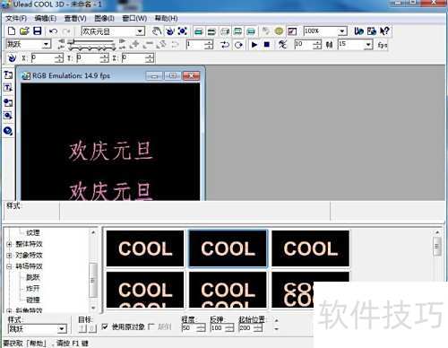 7、 在Ulead Cool 3D中为文字添加了跳跃动画效果。