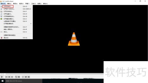 4、 该播放器支持直接读取本地视频文件,操作方式与暴风影音、百度影音类似。点击界面右上方的媒体按钮,在下拉菜单中选择打开文件,便可浏览并播放存储在电脑中的视频内容。