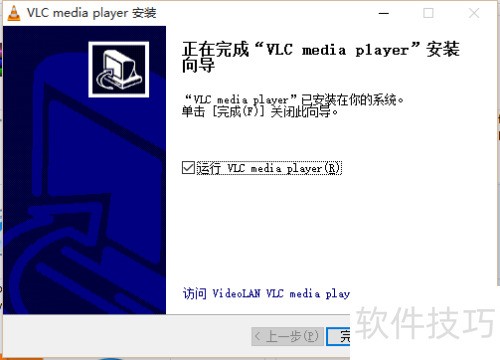 3、 安装完成后,可勾选运行VLC播放器,点击完成即自动启动,具体操作所示。