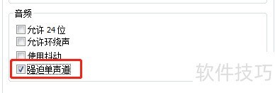 8、 进入音频设置,勾选强制单声道左侧方框,完成配置。