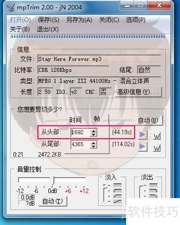 4、 播放音乐,定位到需截取的歌曲起始位置