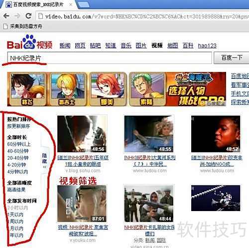 2、 若内容分散,可使用视频搜索引擎查找,1所示的百度视频搜索功能。
