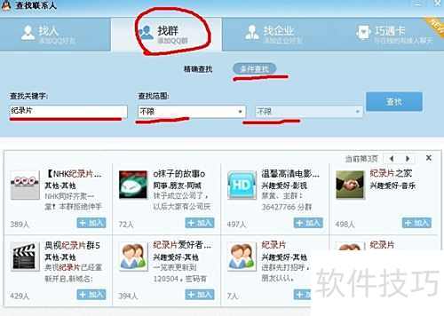 6、 寻找3所示的纪录片QQ群,优先选择成员较多的群组申请加入,尽量多申请几个,因为并非所有群主或管理员都会批准入群请求。