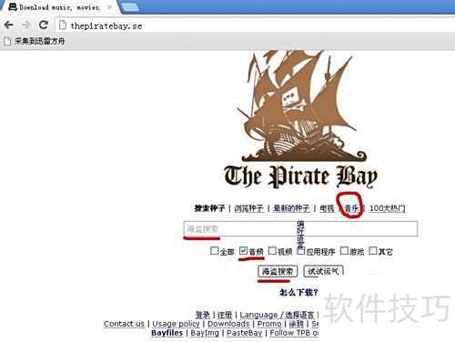 2、 BT依然是获取资源的理想方式,尽管过去国内许多BT站点和论坛相继关闭,但BT网络依旧强大,其共享精神持续传承,深受用户青睐。目前仍可通过主流BT网站及搜索引擎查找音乐资源的种子文件或磁力链接。以图1中的海盗湾(The Pirate Bay)为例,这类平台提供了丰富的音乐资源。获取链接后,只需借助常见的下载工具即可开始下载,操作简单且效率较高,广受喜爱。