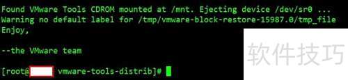 13、 请注意,Vmware Tools镜像已挂载至/mnt目录,系统自动卸载了/dev/sr0设备,表明安装成功,镜像文件被自动弹出。