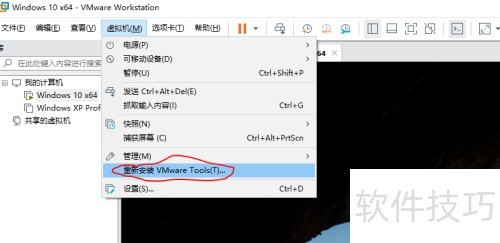2、 系统启动后,进入VMware界面,点击菜单栏中的虚拟机选项,在下拉菜单中即可找到VMware Tools的安装入口。由于本机此前已安装过该工具,因此此处显示为重新安装。