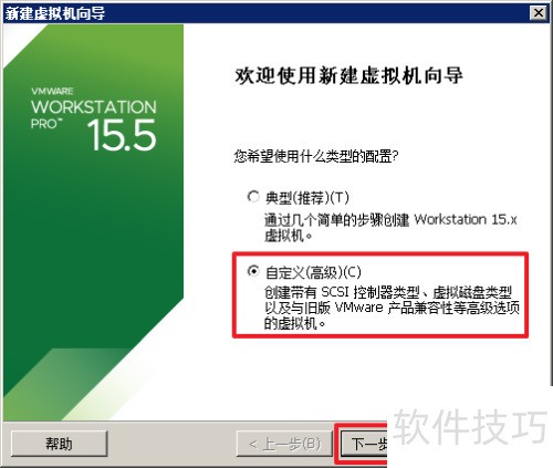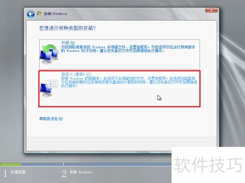 2、 选择自定义(高级)选项,随后点击下一步按钮。
