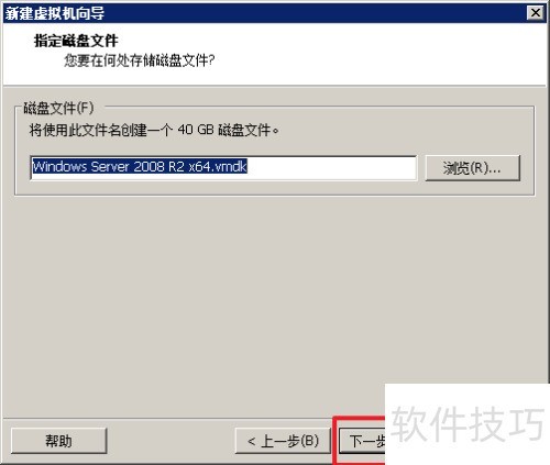15、 磁盘文件可保留默认设置或自行更改,完成后点击下一步继续。
