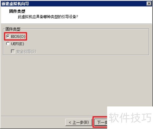 7、 选择默认的BIOS固件类型,随后点击下一步继续操作。