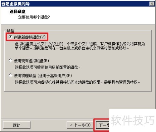 13、 选择新建虚拟磁盘选项,随后点击下一步继续操作。