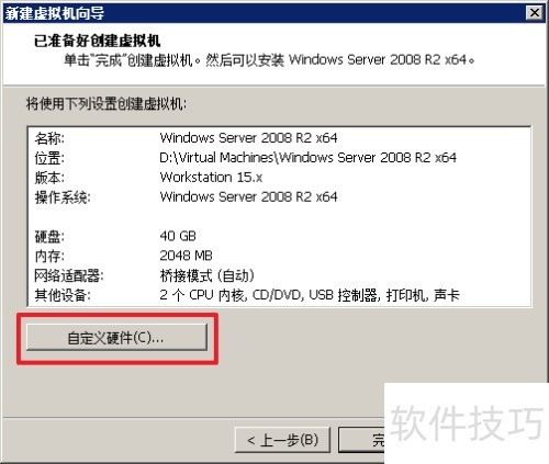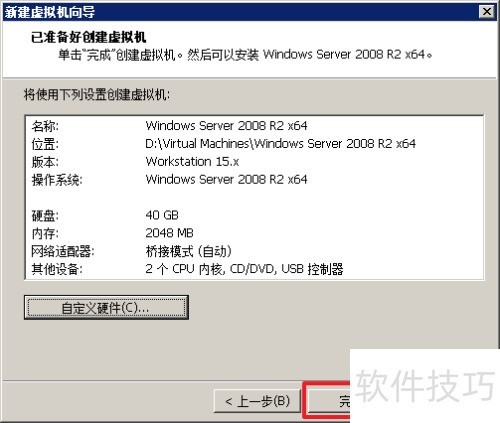 在 VMware Workstation 中创建新虚拟机,选择 Windows Server 2008 R2 镜像文件,完成系统安装向导即可完成安装。