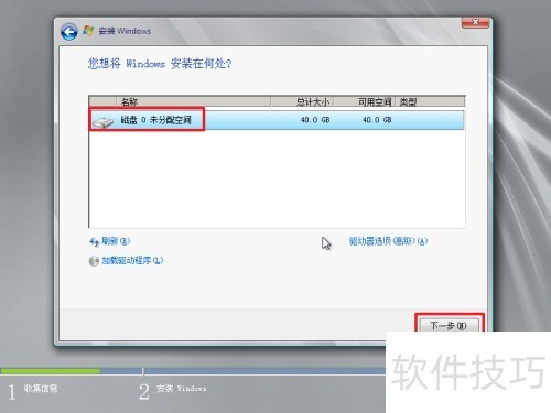 34、 选择目标磁盘后,若不需分区,直接点击下一步,系统将自动将整个磁盘划为单一C盘分区,无需额外操作。