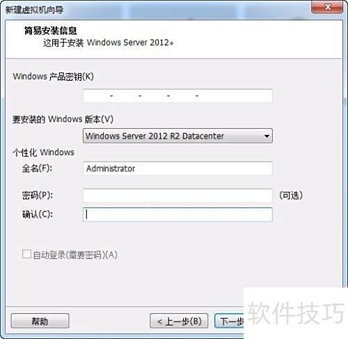 5、 可选择跳过预输入Windows Server 2012 R2系统激活码与管理员密码的步骤。