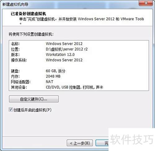 8、 此时已准备好创建虚拟机,可直接点击完成。若需调整硬件配置,应选择自定义硬件进行相应设置。