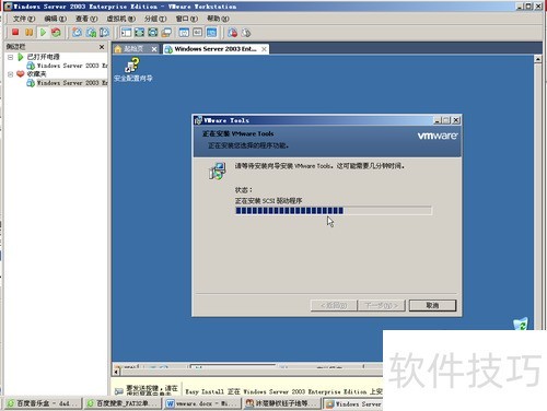 9、 首次安装完成后,虚拟机将自动配置并安装VMware Tools,至此,一个完整的Windows Server 2003虚拟操作系统已成功部署并可正常使用。