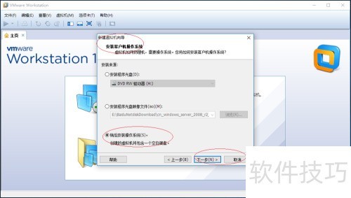 3、 出现安装客户机操作系统窗口,选择稍后安装操作系统,然后单击下一步继续操作。