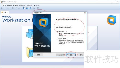 2、 所示,打开VMware Workstation 10程序界面,选择创建新的虚拟机,进入向导后勾选典型(推荐)模式,继续后续设置步骤。