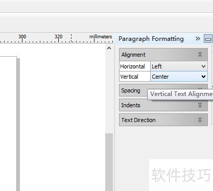 5、 在段落格式化对话框中,点击垂直对齐选项,然后在下拉菜单中选择向上、居中或向下等对齐方式,本例中选择居中以实现文本在垂直方向上的居中对齐效果。