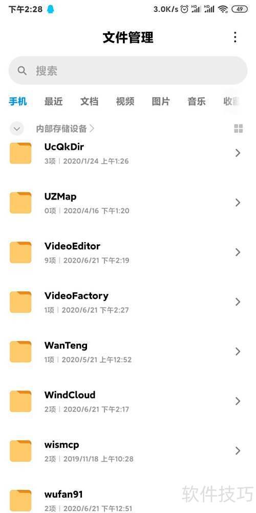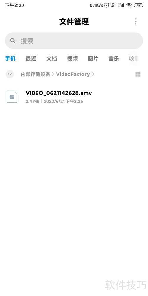6、 要查找文件保存位置,可打开手机文件管理器,向下滑动找到名为VideoFactory的文件夹,点击进入即可查看文件存储路径。
