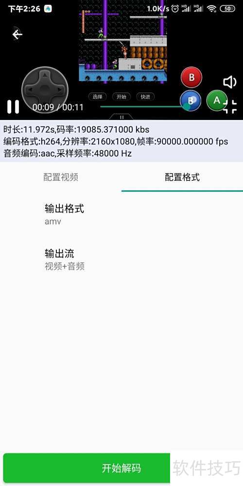 4、 点击右侧配置,选择AMV格式,然后点击下方开始解码按钮。