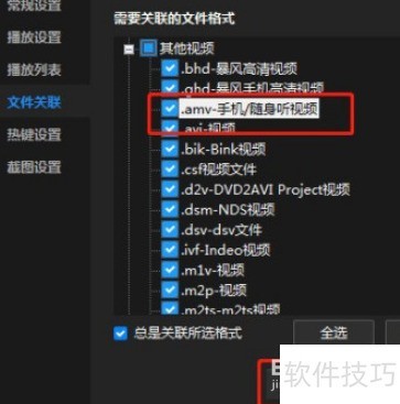 6、 勾选.amv-手机/随声听视频选项,然后点击下方确定按钮完成操作。