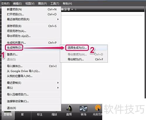 7、 在生成特殊菜单中点击选择生成为选项。