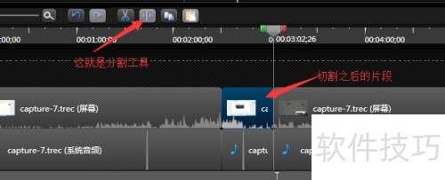12、 找到需剪辑的片段,使用切割功能将其从完整视频中分离出来。