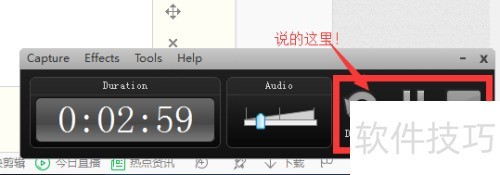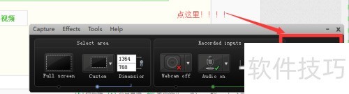 3、 若未进入快速启动栏,需点击左上角红框按钮,方可进入录制界面。