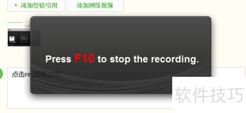 7、 录制完成后,可点击停止按钮或按下键盘F10键结束录制。