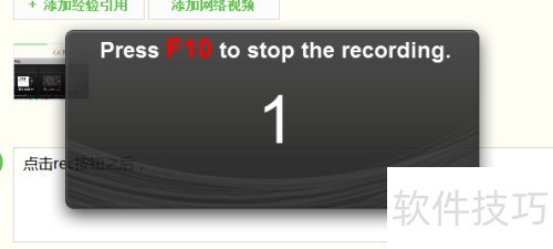 5、 按下录制按钮后,系统提示按F10结束,随即进入3、2、1倒计时,倒计时结束即开始录制。
