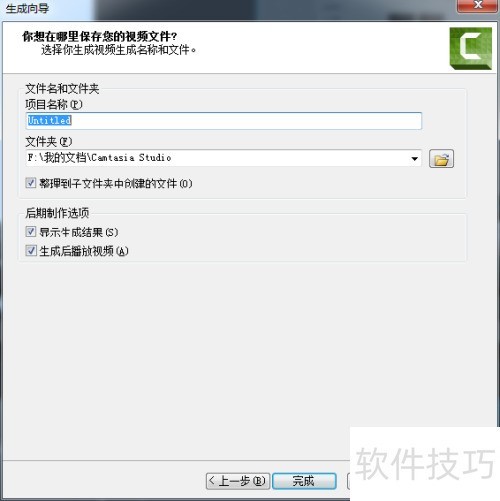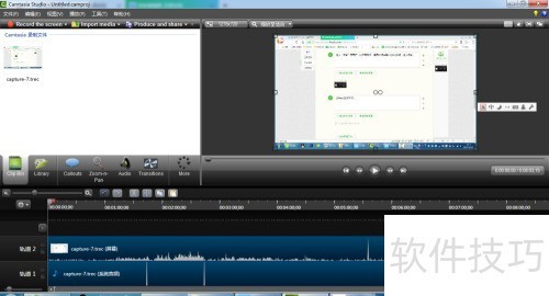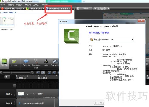15、 完成录屏视频的编辑后,即可导出视频。操作方法:点击produce and share按钮,进入生成向导界面,按照提示完成导出操作。
