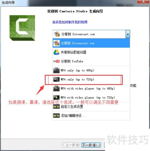16、 选择MP4格式,720P清晰度,然后点击下一步。