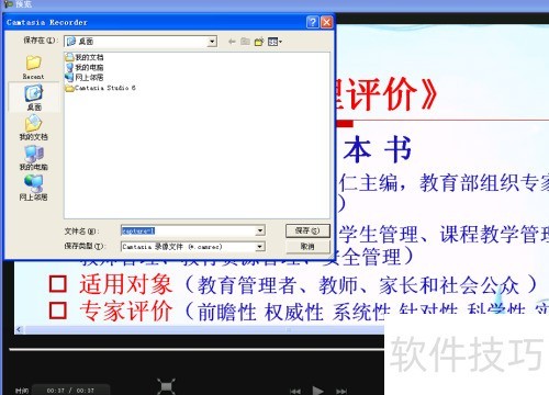 7、 录制完成的微课可随时保存,只需点击保存按钮,选择存储路径、文件格式并输入文件名,确认即可完成保存操作。