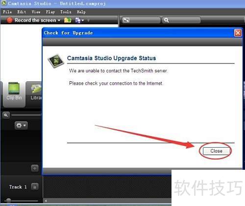 2、 关闭升级提示窗口,点击箭头所指的关闭按钮即可。