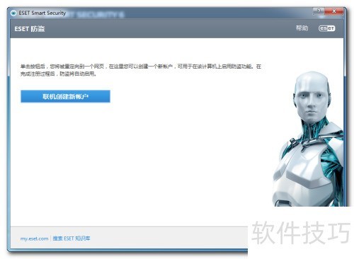 3、 按照提示联网创建新账户,系统将自动将其与ESET Smart Security账户关联。