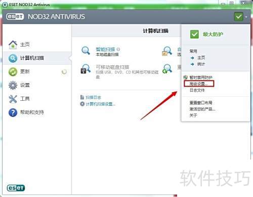 1、 在任务栏上找到ESET NOD32 Antivirus 7图标,双击即可打开主界面;也可单击图标后,选择选项,同样能进入主窗口界面。操作简单直观,方便快速访问防护功能。