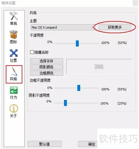 40、 打开主程序的设置界面,进入风格选项,在主题后点击获取更多进行下载。将解压后的StackDocklet文件夹复制到软件安装目录下的Docklets文件夹中。若已下载过相关文件,该文件夹可能已存在于初始下载的压缩包内,直接使用即可完成添加。