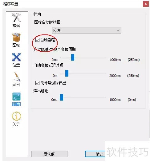 26、 在行为选项中启用自动隐藏,设置延迟时间后点击确定,dock栏将默认隐藏,仅在鼠标移至边缘时显示。