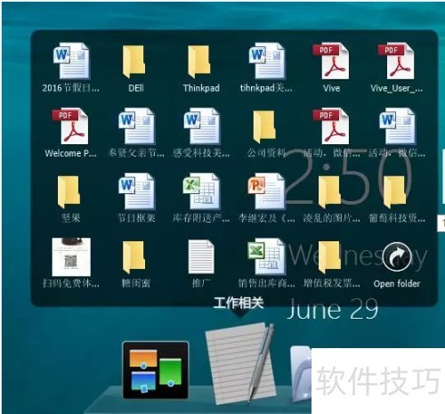 44、 例如,我将所有应用快捷方式放入一个文件夹,并修改其图标,实现如下效果:点击Open folder即可打开对应文件夹,右侧的工作图标同样指向一个文件夹,方便快速访问。