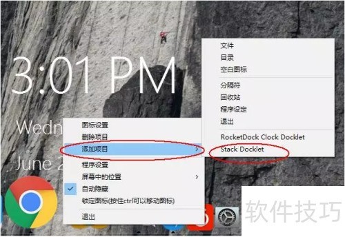 41、 右键点击任务栏,选择添加项目,然后选中stack Docklet即可。